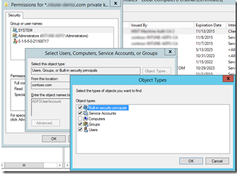 - Assign the proper permissions to the Private Key for the ADFS Managed Service Account: