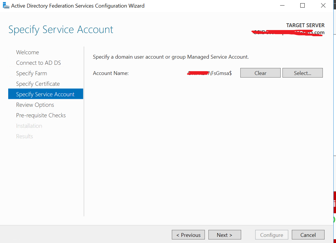 Specify service account which is used for farm. In my case I’m using the gMSA account which has been supported by ADFS since W2012 R2.