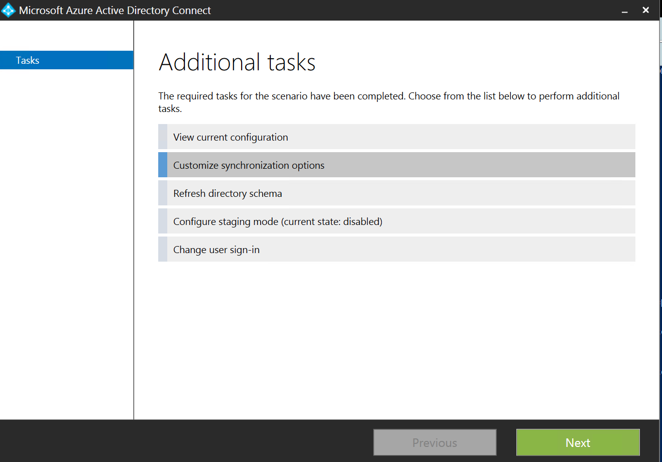 Run the AAD Connect.exe and select “Customize Synchronization Options”