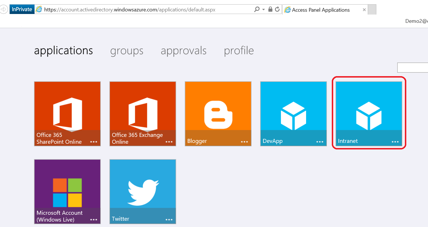 In my example I logon to myapps.microsoft.com portal and access application called Intranet which has been published through AAD App Proxy.