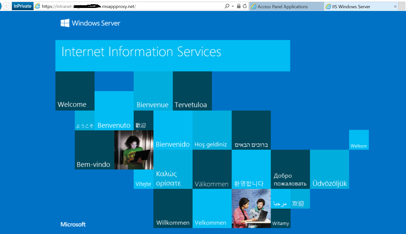 When second factor authentication is accepted my dummy IIS web site opens. This web site is located at on-premises W2012 R2 server.