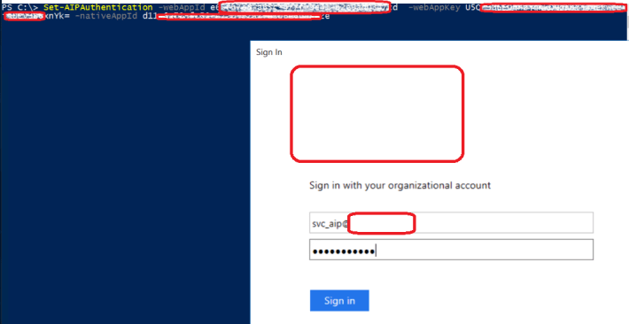 - Set-AIPAuthentication -webAppId <ID of the “Web app / API” application> -webAppKey <key value generated in the “Web app / API” application> -nativeAppId <ID of the “Native” application >