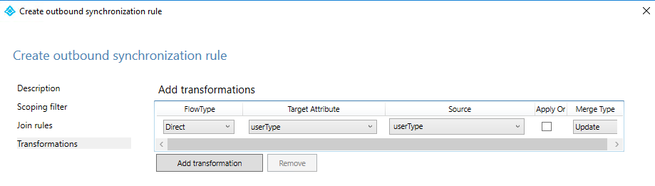 - Create an outbound synchronization rule to flow the attribute value to Azure AD