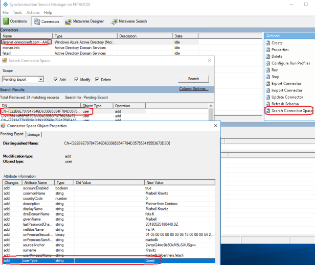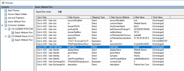 After full imports are ran verify synchronization rule changes from connector space for an existing user object. Most convenient way to do this is preview tool from AAD Connect where I can see that UserType has been populated to this user. How to preview changes