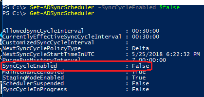 - Set-ADSyncScheduler -SyncCycleEnable $false