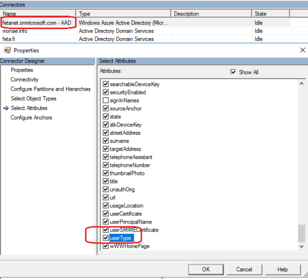 - Add the UserType to the Azure AD Connector schema