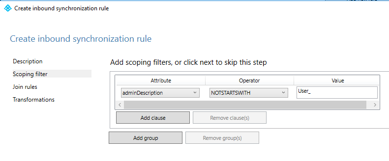 Scoping filter: adminDescription – NOTSTARTSWITH – User_