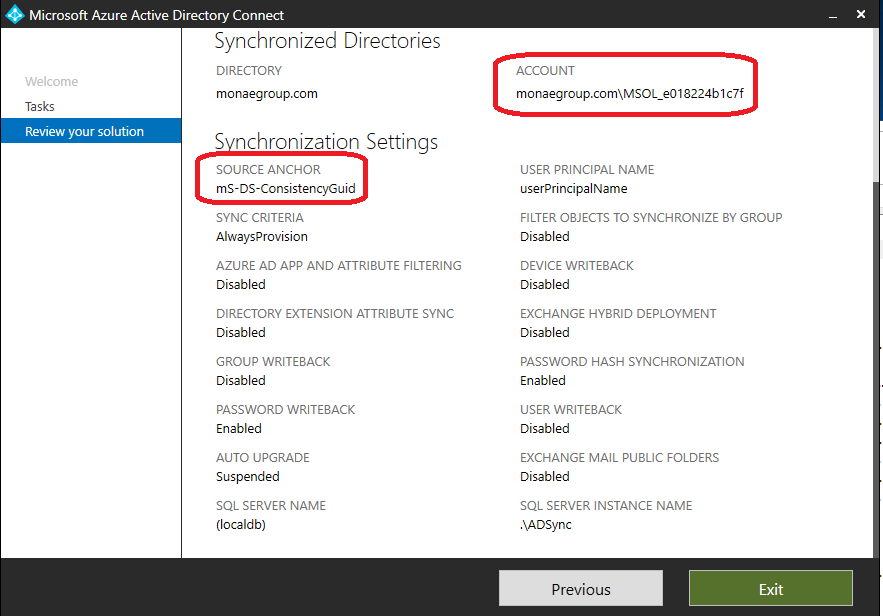 I have a case in my table where AAD Connect has been implemented with express settings (four clicks to the cloud) and is using default accounts created by installation wizard.