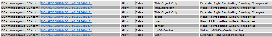Set-ADSyncRestrictedPermissions “svc_aadconnect,OU=ADManagement,DC=monaegroup,DC=com”