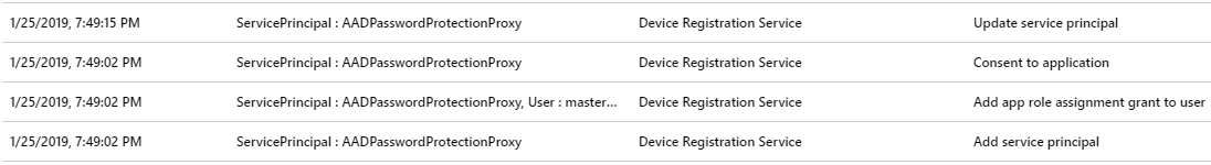 During deployment of service the following events appear to Azure AD logs.