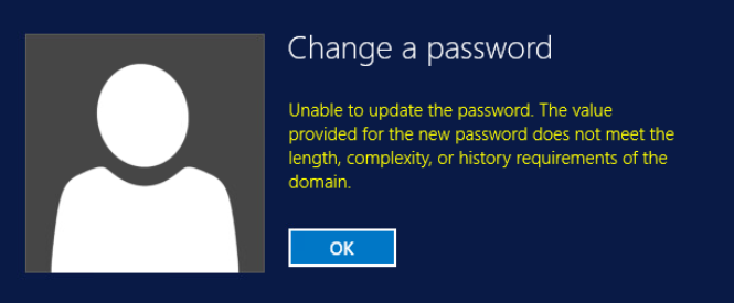 When user tries password which is blocked by ADDS password policy