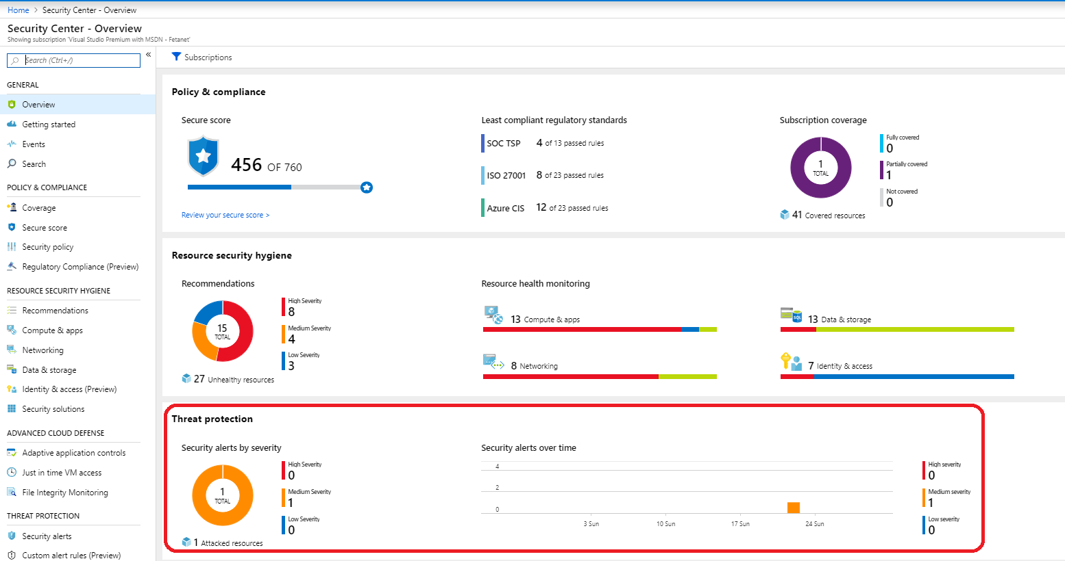 - Azure Security Center Threat Protection section