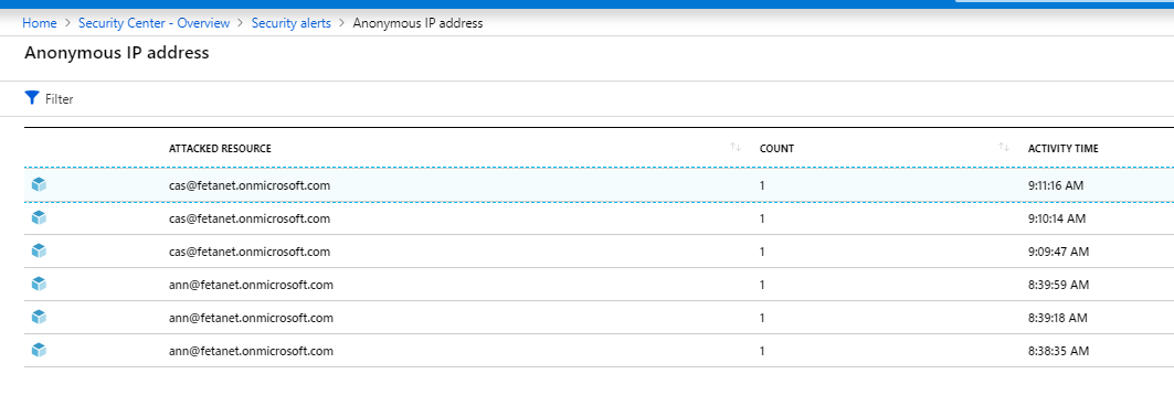 As said, when Azure AD Identity Protection (IP) is in use and ASC upgraded to standard tier ASC automatically detects AAD IP. With AAD IP you can receive identity related alerts such as: