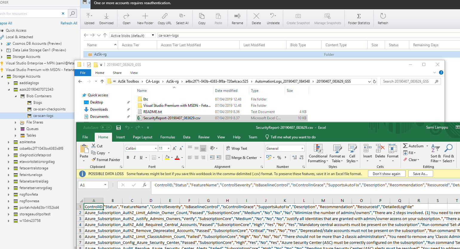 From storage account (azsk2019…) where data is also saved you can download csv files and analyze data on traditional way in case it’s needed.