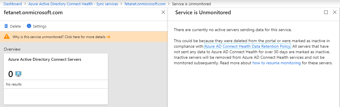 - Server has been marked as inactive in AAD Connect Data Retention Policy