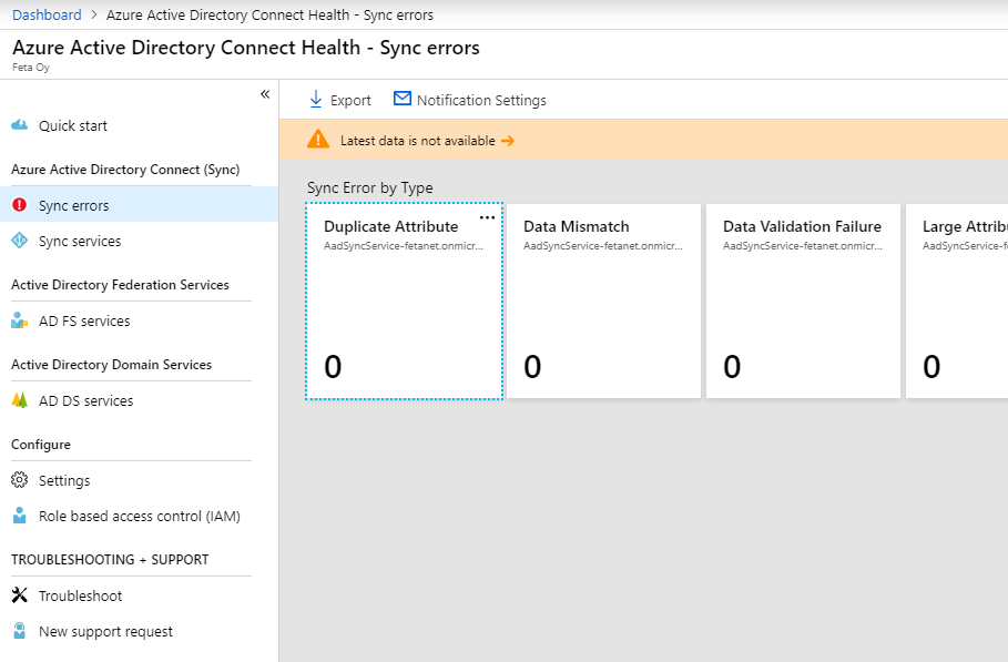 Azure AD Connect Health is very useful monitoring tool which provides monitoring capabilities for Azure AD Connect sync engine, Active Directory Federation Services (ADFS) and Active Directory Domain Services (ADDS).