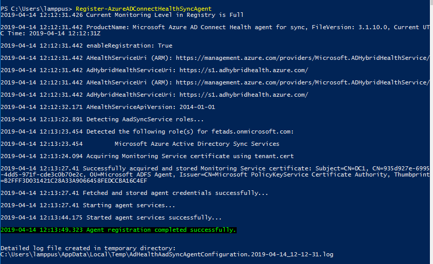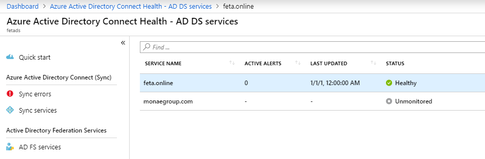 In my example I’ll use the latter one, re-register monitoring agents with Powershell. In my environment I have AAD Connect Sync and Domain Services monitored and commands are