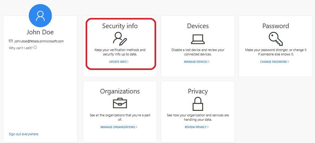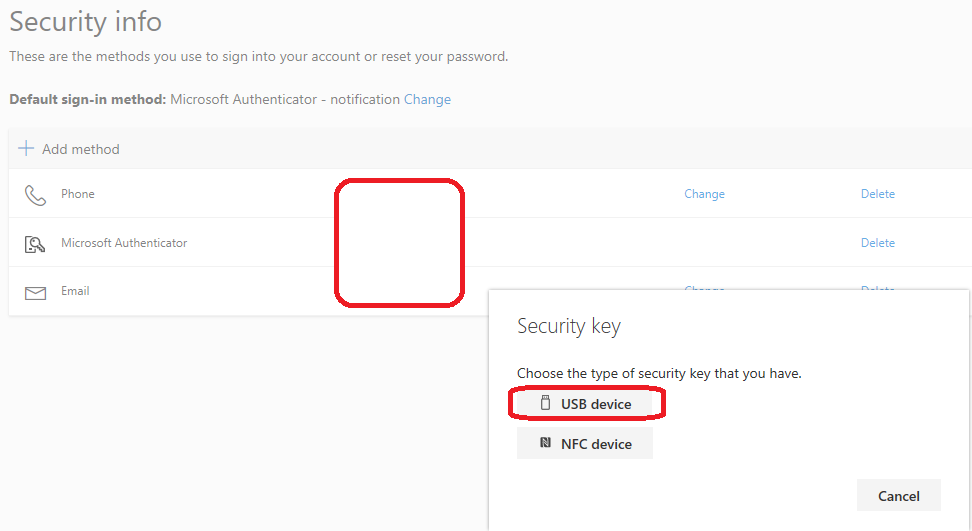 When the configuration is ready, the user can self register FIDO2 security keys in to use from https://myprofile.microsoft.com web site and add security key as an additional authentication method.