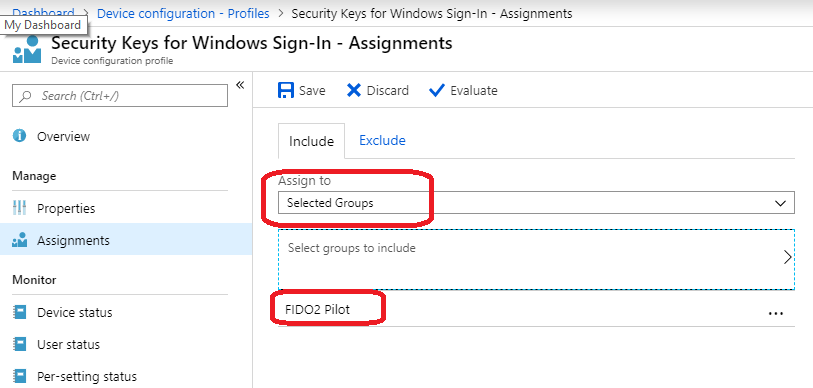 The first task is to enable Credential Provider to devices that will be used in the FIDO2 scenario. The easiest approach is to use Intune for configuration and create necessary profile configuration for AAD Joined Windows 10 devices.