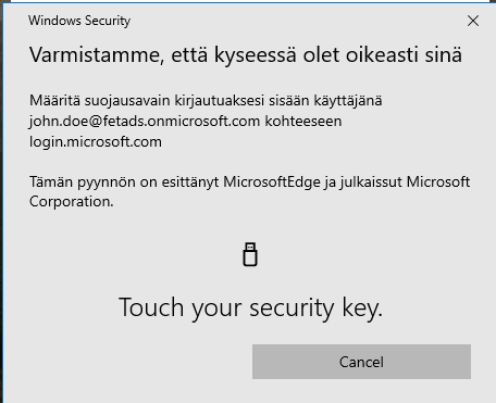 - WebAuthN requires Microsoft Edge on Windows 10 version 1809 or higher