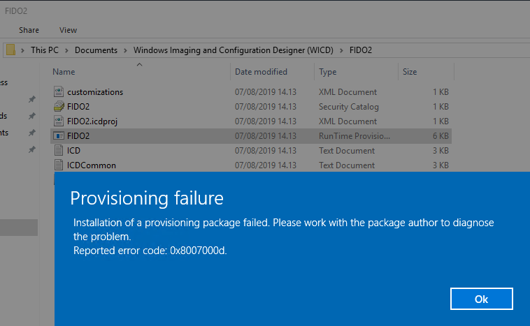 The first picture is from installing a provisioning package manually. The second and thirds ones are from Intune deployment test to non-AAD joined device.