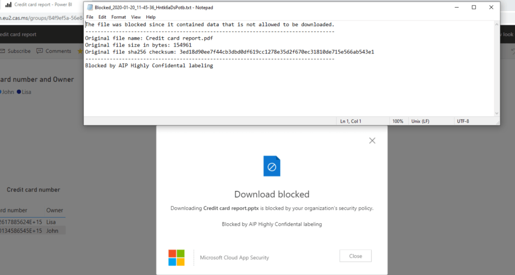 The idea in this use case was to control (block download) of the Power BI content based on device status and AIP classification. With this policy, you can block download activity if controls are not satisfied. In this policy used controls are: