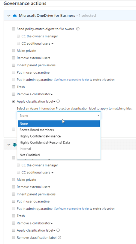 Automatic AIP classification doesn’t work at the time of writing with Power BI. Currently, MCAS supports AIP governance actions for OneDrive and SharePoint from Microsoft workloads. From 3rd party applications, Box and G Suite are supported for AIP governance actions. A full list of supported actions and applications can be found from this link.