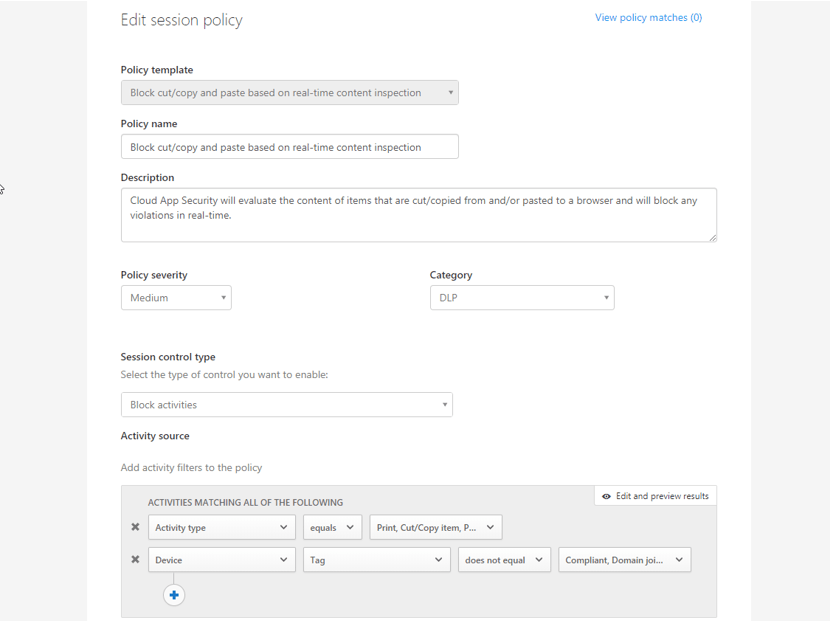 Policy 2 – Block cut/copy and paste based on real-time content inspection