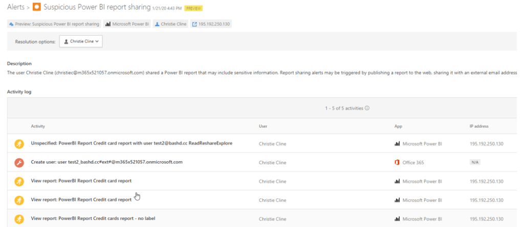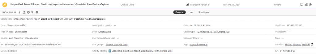 - Suspicious Power BI report sharing