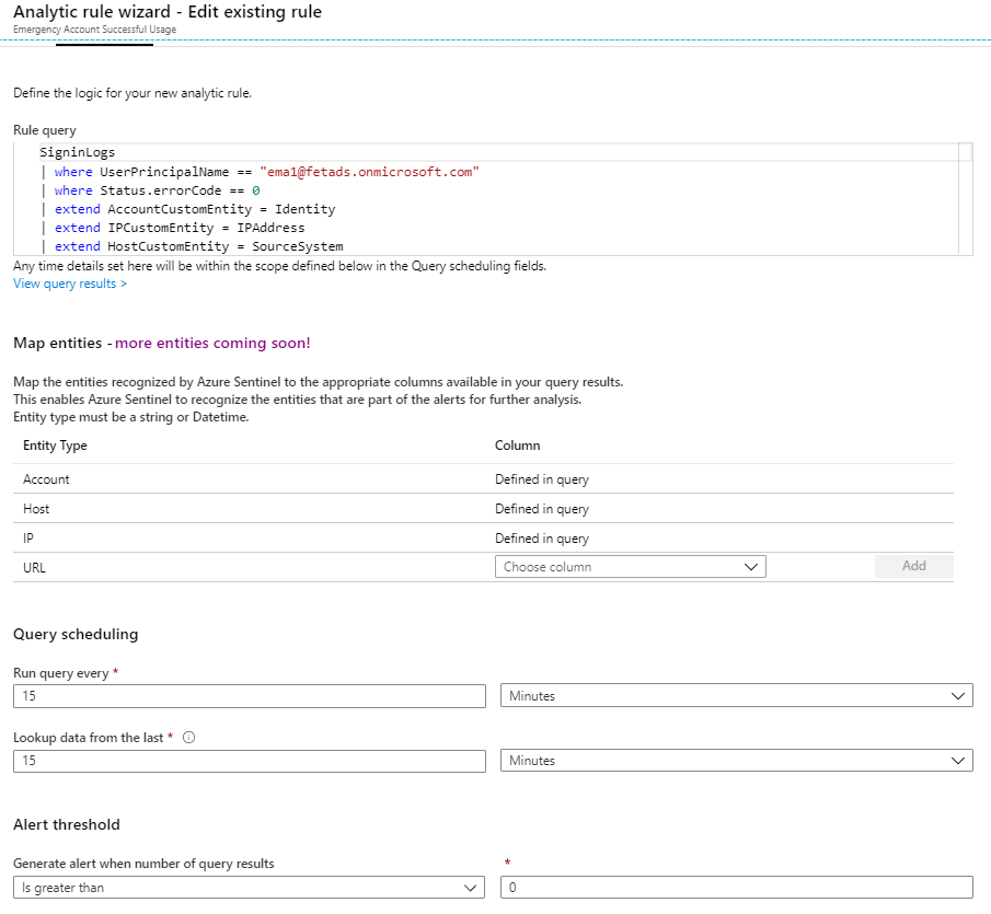 Before Azure Sentinel existed, I implemented emergency account monitoring with Azure Alerts feature. It works like a charm but is not as flexible as Sentinel rules. The same KQL query makes a trick in Azure Monitor than in Sentinel.