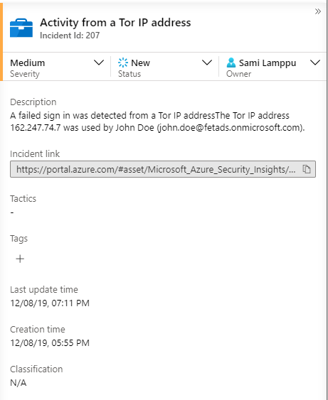 Generated from the Tor browser which fulfills the “Anonymous IP address” or “Unfamiliar sign-in properties” scenario.