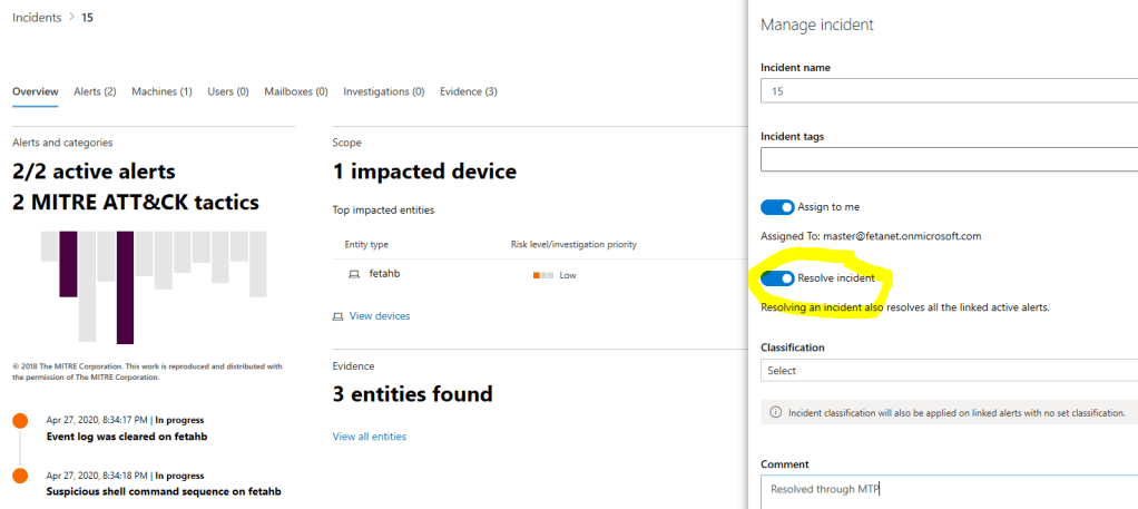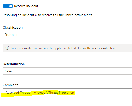 When you resolve the incident from M365 Security Center through MTP capabilities it’s resolved from both