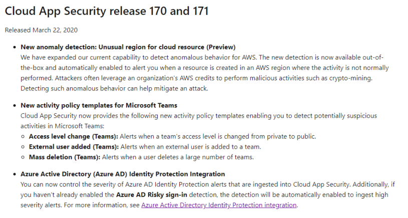 In the release 170 & 171, three (3) new activity policy templates published for Microsoft Teams: