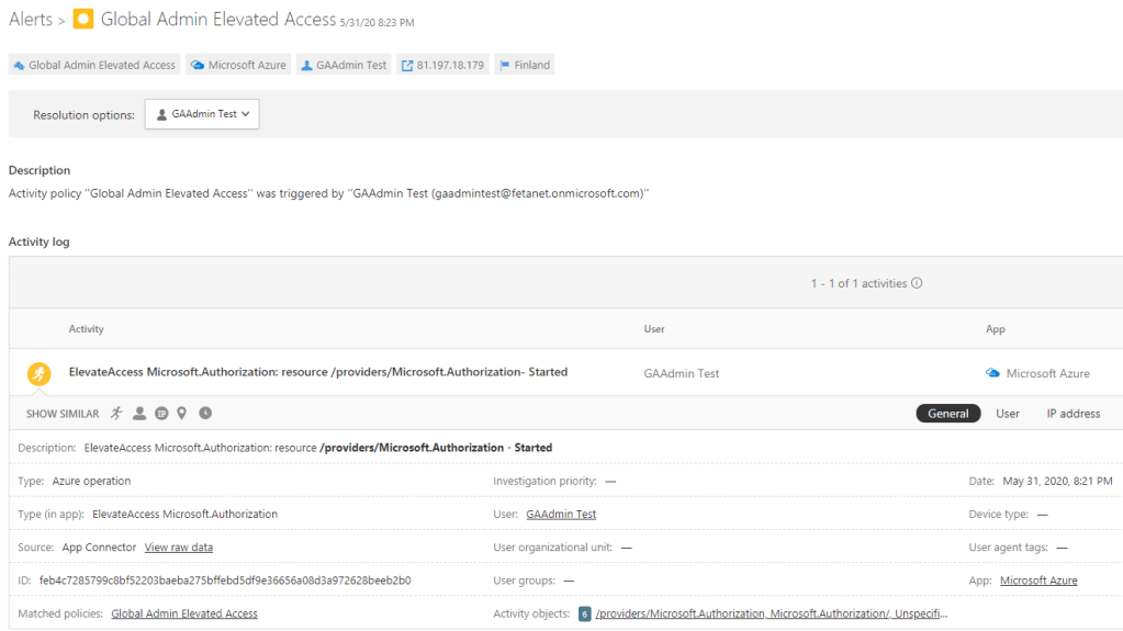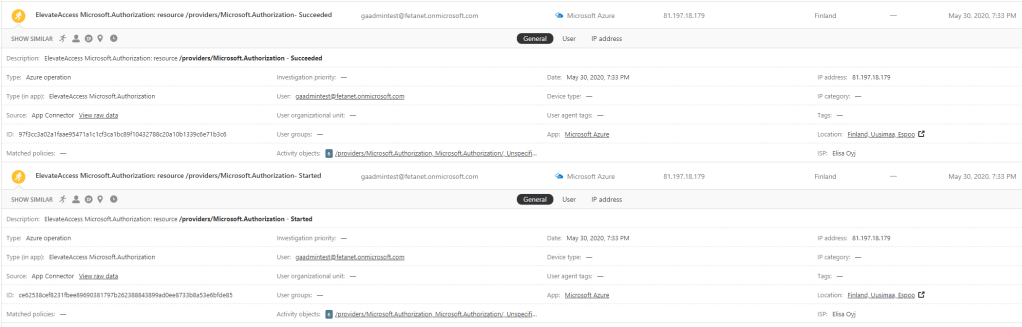 - Azure operation = ElevateAccess Microsoft.Authorization