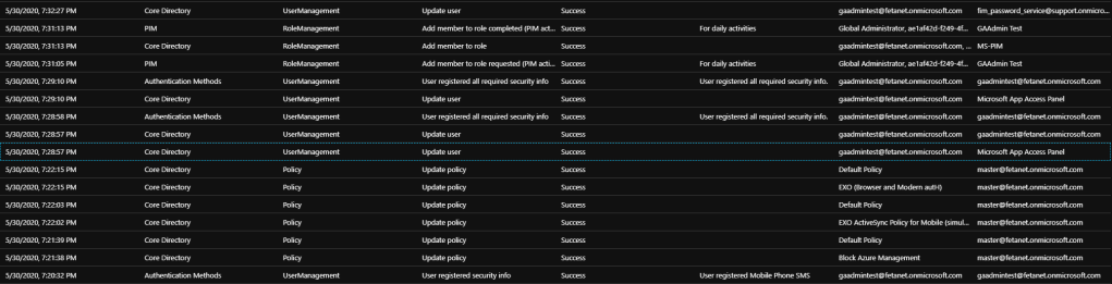 During the time of change there isn’t anything in Azure AD Audit Logs.