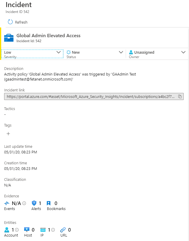 At the end of the day, you will receive an alert every time someone with Global Admin permissions in the organization elevates access to Azure resources starts & succeed/fails.