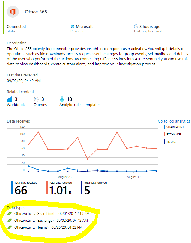 Worth to mention is, because the Teams activities are part of the O365 data connector it’s a free ingestion source.