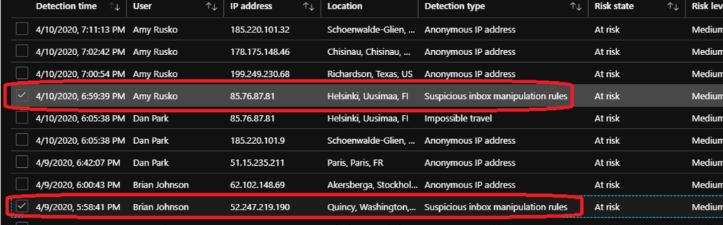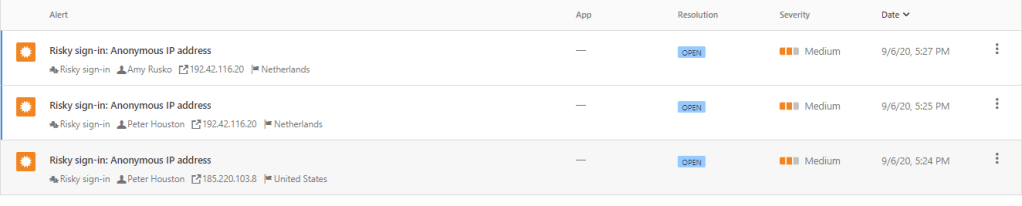 According to Microsoft: “This risk detection type indicates sign-ins from an anonymous IP address (for example, Tor browser or anonymous VPN). These IP addresses are typically used by actors who want to hide their login telemetry (IP address, location, device, etc.) for potentially malicious intent”.