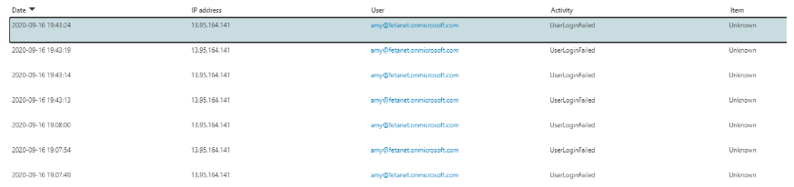 In MCAS, the reason might be that it didn’t receive any information about the failed logins against the endpoint I used. Why – this is a good question that I need to address later on. The failed logins are found from Unified Audit Logs and in such case, those should be found from MCAS also.