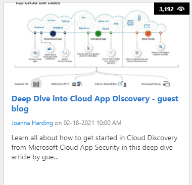 Earlier this year I had an opportunity to write a guest blog to Microsoft’s Tech Community platform together with the Microsoft Cloud App Security Team. The blog is all about MCAS ‘Cloud Discovery’ feature and goes deep underneath the hood, starting from the basics, the options you have for the integration to get date and demonstration with the policy examples.