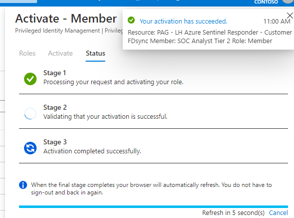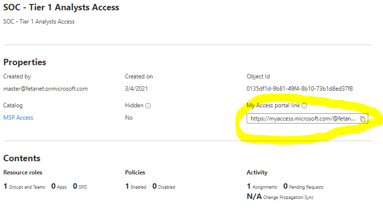 When the link is delivered the SOC Analysts from the MSP side can request access to the resources. When access is requested it goes to the approver, in my case MSP Access Approvers group. When approved the accounts are created and permissions granted in the customer Azure AD tenant..