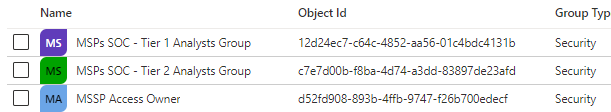 Groups and access is created and managed in customer’s Azure AD tenant. In the example scenario I created three (3) groups: