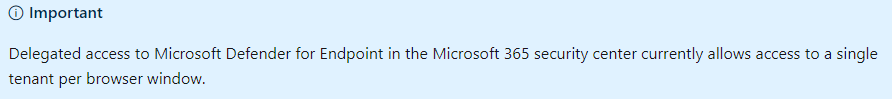 • Take into account that delegated access to M365D allows access to a single tenant per browser.