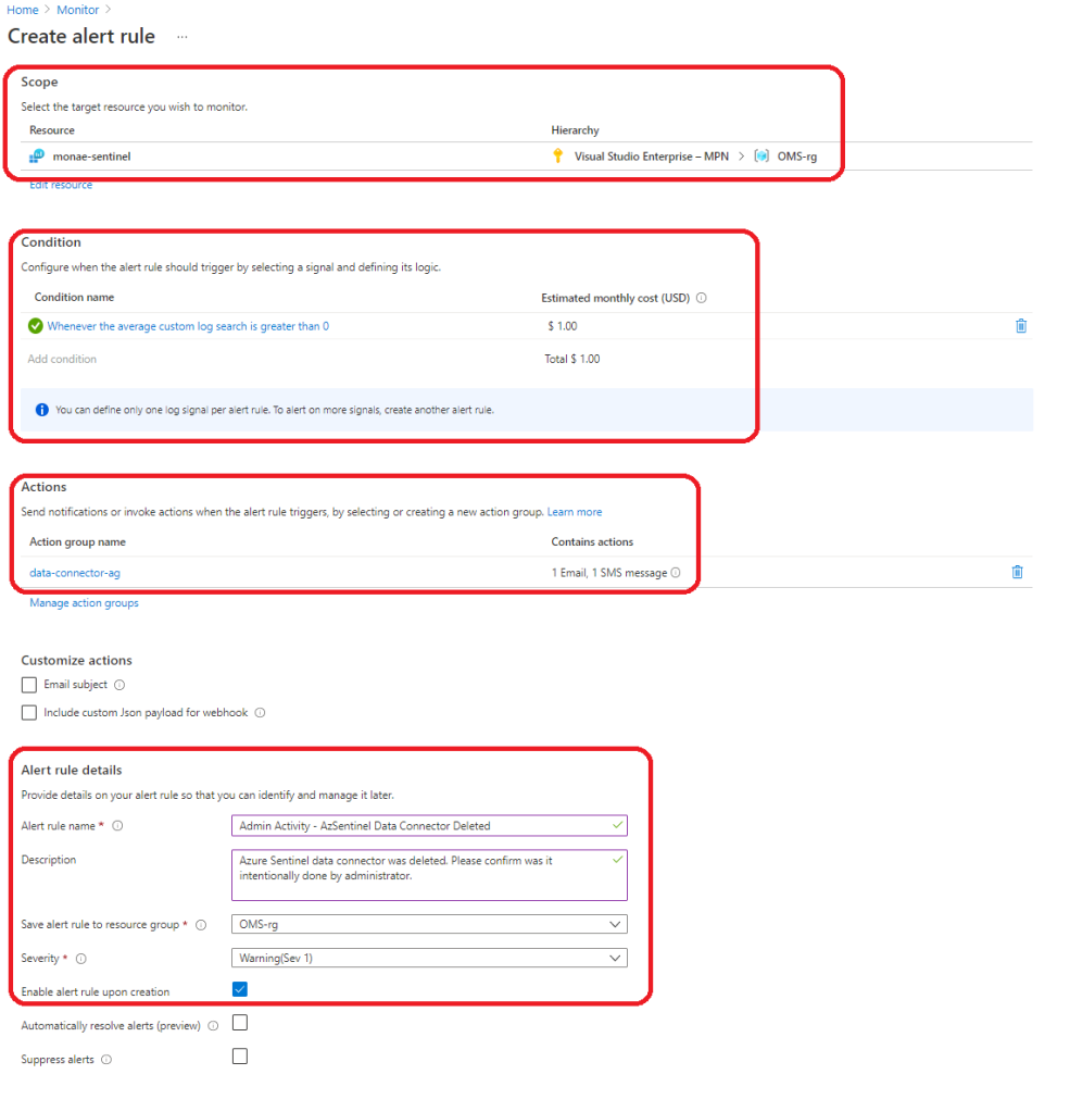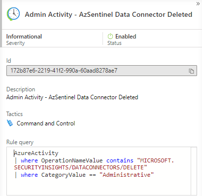 That leads us to the actual use case – “Detecting Data Connector Delete Action”. If someone deletes a data connector from Azure Sentinel the activity is written to Azure Activity Log.