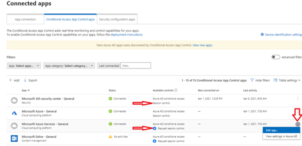 Select ‘view apps’ from Conditional Access App Control apps main page