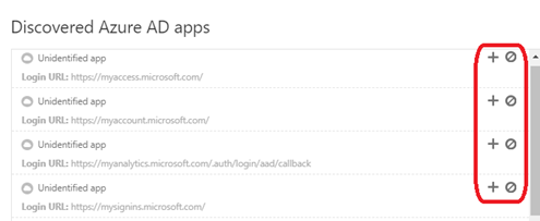 In discovered Azure AD apps page, you can either remove or add the app to MCAS app control.