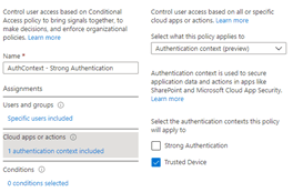 The latest addition to app control mechanisms is Azure AD Conditional Access – Authentication Context which is integrated with the Cloud App Security (step-up authentication). With the ‘Authentication Context’ administrators can provide an extra layer of security inside of applications when needed.
