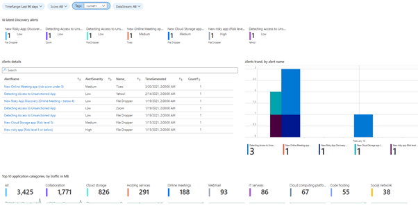 With Cloud App Security ‘Cloud Discovery’ feature organizations can identify applications and user activities, traffic volume, and typical usage hours for each cloud application. In a nutshell, to detect Shadow IT and possible risky applications.