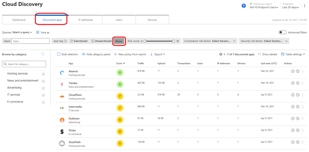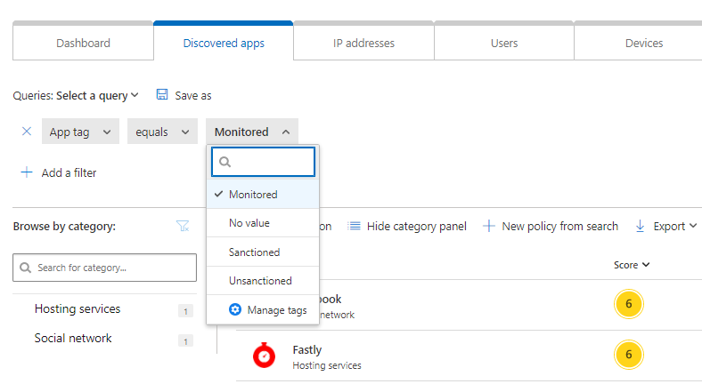 When applications have tags “sanctioned, “unsanctioned” or “monitored” you can filter out the applications which doesn’t have tag. These are the apps that needs further review and decision after analysis phase.