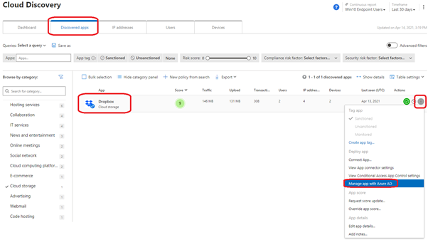 In this blog I will cover possibilities for app management and continuous monitoring. If you want to get yourself familiar with the Cloud App Security ‘Cloud Discovery’ feature, I encourage to read my Tech Community blog post about it (published Feb/20).